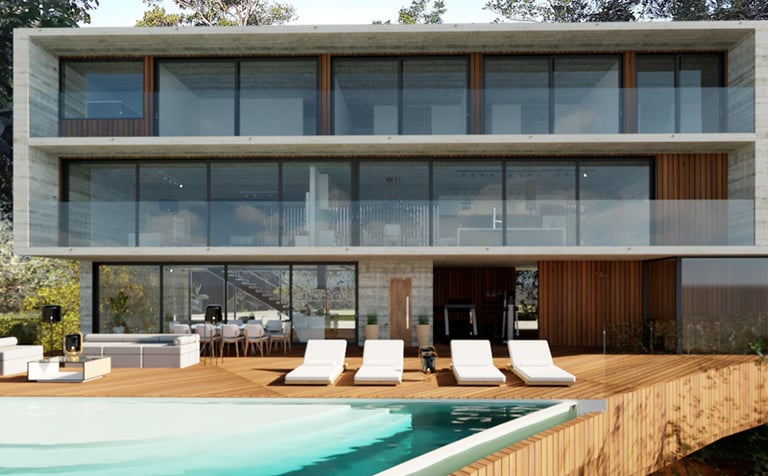 Esta residência é um exemplo perfeito de modernidade e minimalismo. Com uma identidade e design oponentes, destaca-se pela sua beleza e pela vista deslumbrante que oferece. Os materiais utilizados, como a madeira, o aço inoxidável e o concreto, criam uma combinação perfeita para o projeto. A madeira traz um toque de aconchego e naturalidade, enquanto o aço inoxidável e o concreto conferem um aspecto contemporâneo e elegante. Cada detalhe foi cuidadosamente pensado para garantir que a residência seja funcional e visualmente impactante. Dos acabamentos aos móveis, tudo foi escolhido com o objetivo de criar um ambiente sofisticado e harmonioso. Sem dúvida, esta residência é um exemplo de arquitetura de vanguarda.